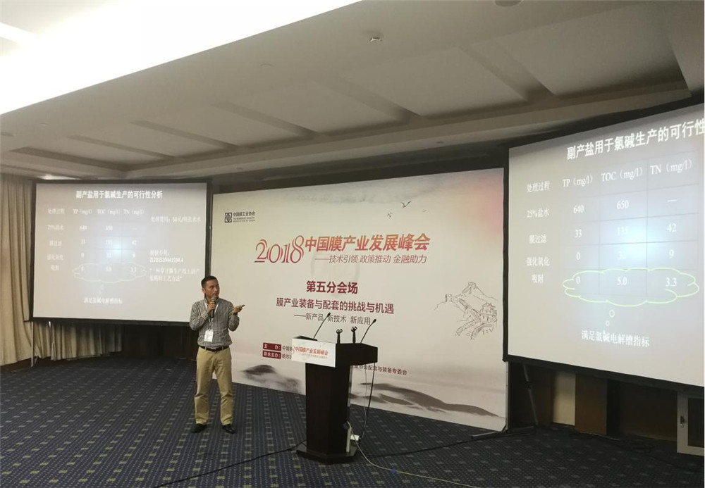 作為中國膜工業(yè)協(xié)會理事單位,杭州天創(chuàng)環(huán)境科技股份有限公司副總經(jīng)理趙經(jīng)緯先生應(yīng)邀作為第五分會場演講嘉賓,同與會嘉賓分享了《含鹽廢水零排放及副產(chǎn)鹽利用技術(shù)探討》的主題演講。會上,趙經(jīng)緯圍繞含鹽廢水零排放,系統(tǒng)介紹了各類廢水的特點、膜工藝選擇與優(yōu)化思路等,并有針對性對各類含鹽廢水的處理工藝進行可行性分析。此外,趙經(jīng)緯還與現(xiàn)場嘉賓分享了天創(chuàng)環(huán)境二十年來在膜工藝應(yīng)用于含鹽廢水零排放領(lǐng)域的探索和多個應(yīng)用案例,獲得了參會嘉賓的關(guān)注。