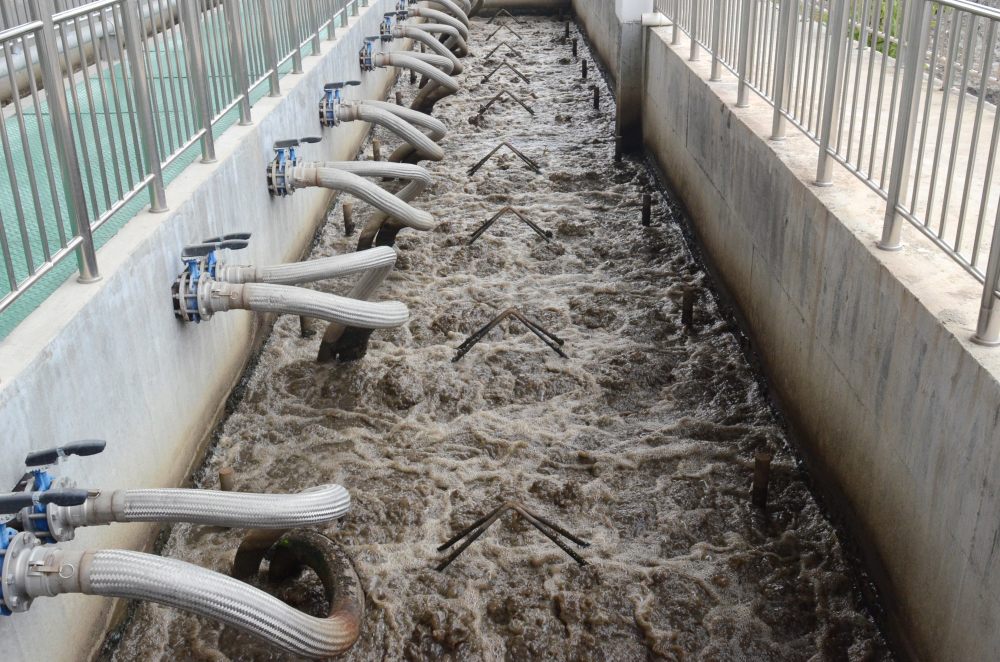 該項(xiàng)目設(shè)計(jì)規(guī)模30000m3/d,夏季平均處理水量達(dá)29000m3/d。采用改良AAO結(jié)合MBR工藝,出水指標(biāo)穩(wěn)定達(dá)到地表準(zhǔn)四類標(biāo)準(zhǔn)。深度處理部分采用了天創(chuàng)環(huán)境自主研發(fā)的膜生物反應(yīng)器(MBR)集成技術(shù)。