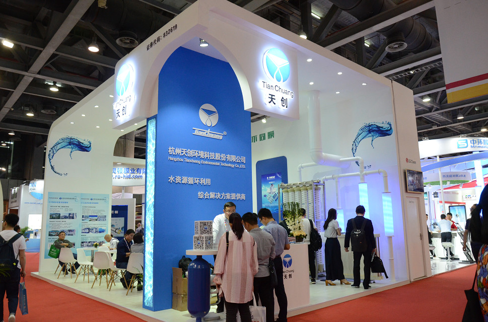2018廣東水展今日盛大開幕,來自國內(nèi)外的水處理企業(yè)紛紛參展。展會媒體組在1號館主通道的入口處,被杭州天創(chuàng)環(huán)境科技股份有限公司明亮通透的展臺布置所吸引,整個展臺圍繞“水資源凈化與再循環(huán)”的主題理念,利用光柱打造的水循環(huán)結(jié)構(gòu)與濾膜、濾芯等展品相呼應(yīng),凈澈通透而富有創(chuàng)意。