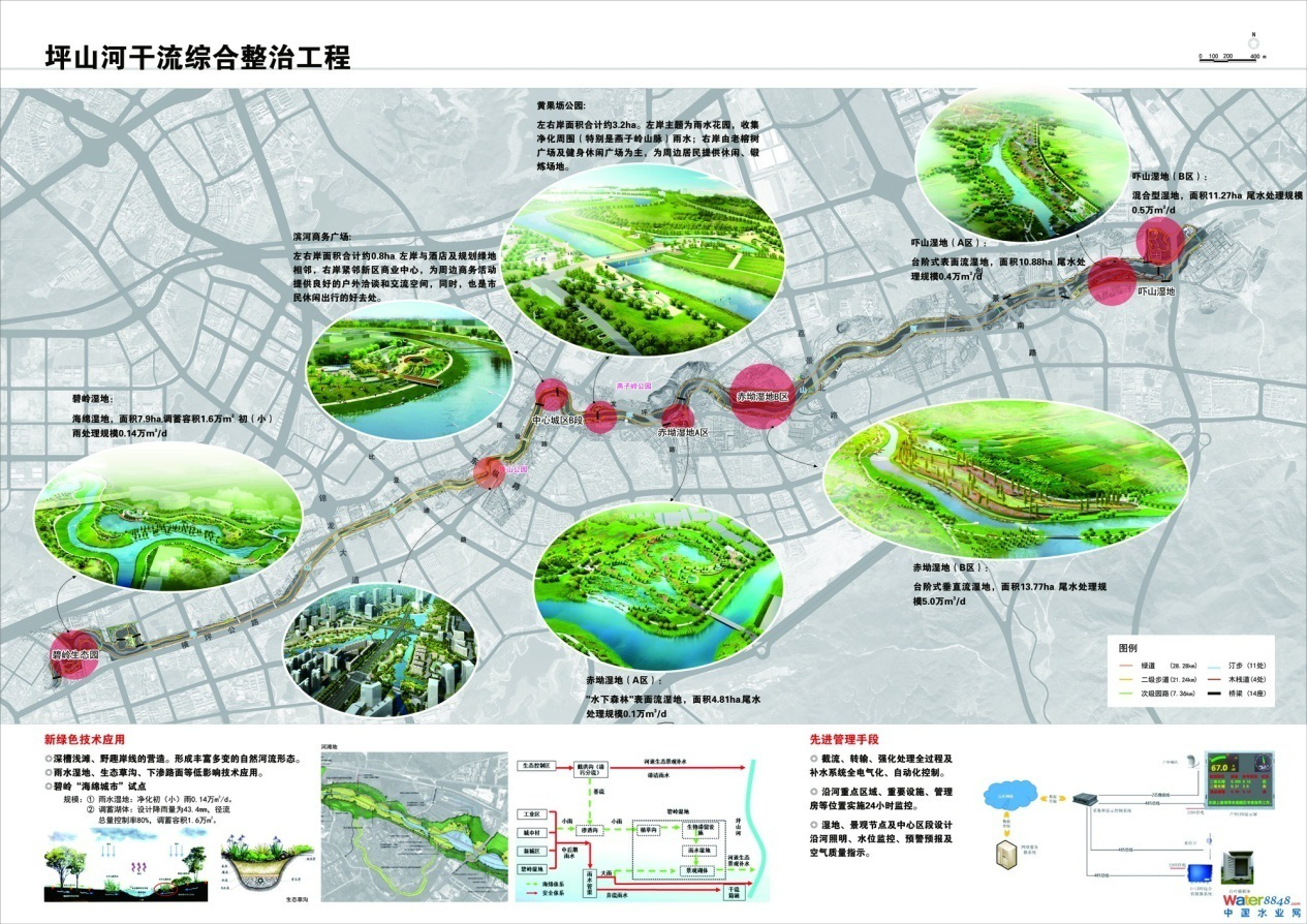 坪山河項目在政策引領、上位規(guī)劃的基礎上,創(chuàng)新性的提出了以水資源、水環(huán)境、水安全、水生態(tài)、水文化“五位一體”的治水理念和“治污、防洪、生態(tài)修復”+“城市建設”的“3+1”治水思路。