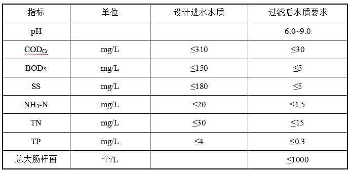 本項目設計進出水水質如下: