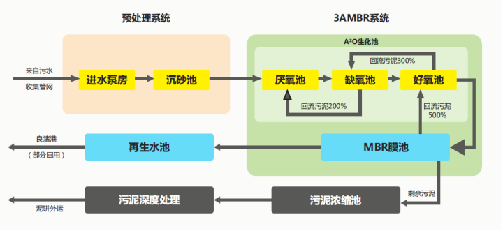 浙江省杭州市良渚污水處理廠三期工程的深度處理單元設(shè)計(jì)規(guī)模3.0萬m3/d,處理工藝為天創(chuàng)環(huán)境自主研發(fā)的高效膜生物反應(yīng)器(MBR)集成技術(shù)。