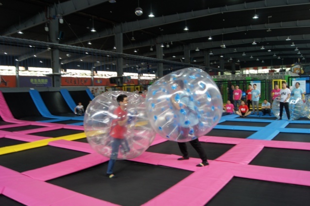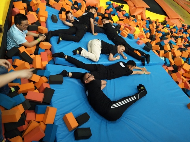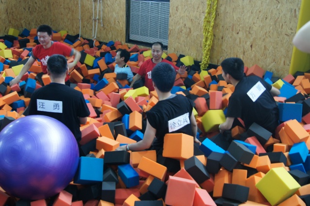 首先教練把大家分成了4個組,開始熱身運動。在一個簡單的考驗大家反應速度的游戲環節以后,時間長達3個小時左右的競技比賽正式拉開序幕。4個隊的隊員一一進行了“搶占高臺、泡泡球大戰、人體密碼、腦洞大開和終極大戰撕名牌”幾輪游戲的比拼,在面對花樣百出和重重難關的游戲下,各隊隊員都各顯神通,體能挑戰和腦力大作戰都得到了充分的發揮與展示。所以環節都開展的有條不紊而且充滿樂趣,隨著一個個游戲的攻破,隊員們也在合作中增加了彼此的信任和了解。最后玫紅隊過五關,斬六將,在四個隊伍中脫穎而出,獲得了這次競技比賽的冠軍。