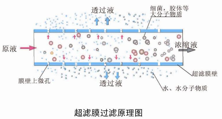 超濾膜技術是一種膜透過分離技術,其濾過能力介于納濾和微濾之間,其工作原理是: